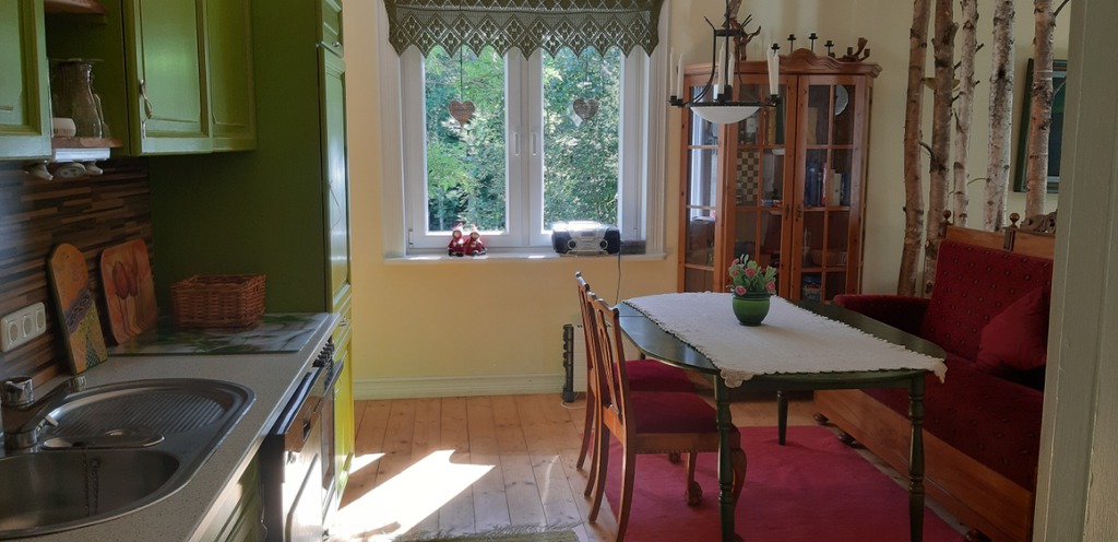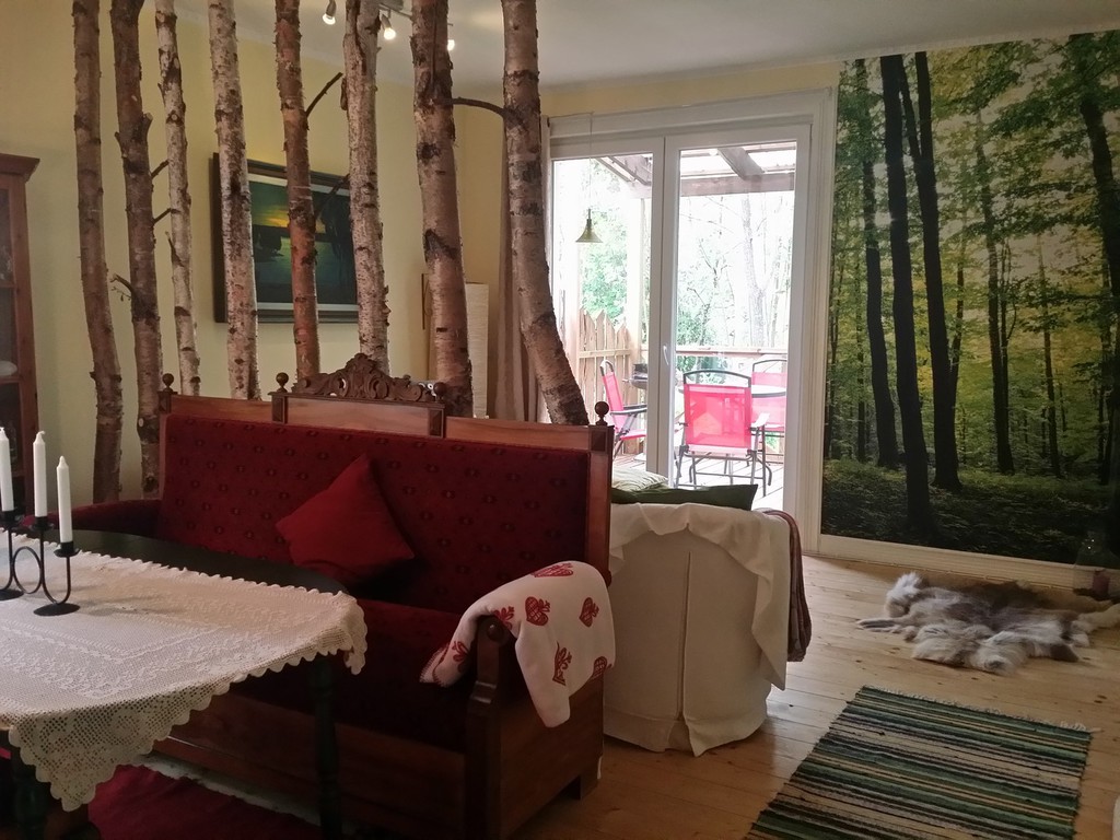 Unsere Ferienwohnung Eulennest befindet sich auf der linken Hälfte des sogenannten Cafehauses auf dem Gelände des Kreativhofes. Im ehemaligen Cafehaus befindet sich auch auf der rechten Seite die Ferienwohnung "Waldloft". Das Haus ist durch ein kleines Wäldchen vom Rest des Hofes abgetrennt.
